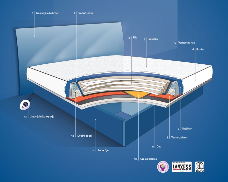 BluTimes uporablja le materiale najvišje kakovosti in jih obdela z najmodernejšo tehnologijo. Vodne postelje je TÜV Rheinland odlikoval s pečatom kakovosti GS za preverjeno varnost, s ToxProof za najstrožjo meritev škodljivih snovi in s certifikatom za trajnost. BluTimes zato za svoje postelje jamči mnogih let. Varnost vseh komponent BluTimes vodnih postelj BluTimes je vedno zagotovljena. To potrjuje pečat kakovosti TÜV Rheinland (TUVdotCOM ID: 661155410). Dodatno je BluTimes certificirana z ISO 9001.